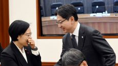 아시아투데이 박성일 기자 = 한성숙 중소벤처기업부 장관(왼쪽)과 김경수 지방시대위원장이 18일 오전 서울 종로구 정부서울청사- 2025-12-18 09:44