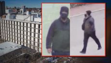 검은색 옷을 입고 마스크로 얼굴을 가린 한 남성. 담장 주변을 서성이다 주변을 살핍니다. 현지시간 13일 브라운대 캠퍼스에서- 2025-12-18 09:43