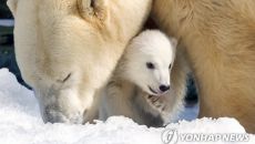 눈밭 위 모성애…어미 잃은 아기곰 입양한 북극곰 포착