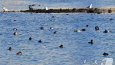 (포항=뉴스1) 최창호 기자 = 18일 경북 포항시 남구 연일읍 형산강에서 다양한 종류의 겨울 철새들이 찾아와 월동하고 있다.- 2025-12-18 09:29