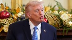 ▲ 도널드 트럼프 미국 대통령 도널드 트럼프 미국 대통령이 백악관에 걸린 역대 대통령들의 사진 밑에 몇몇 전임자들을 조롱하거나- 2025-12-18 08:58
