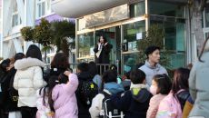 (부산=뉴스1) 윤일지 기자 = 18일 부산 사상구 감전초등학교에서 열린 '감전초·괘법초 만남의 날' 행사에서 괘법초 학생들과- 2025-12-18 14:23