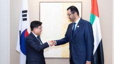 UAE 산업첨단기술부 장관과 악수하는 김성환 장관