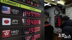 원·달러 환율이 고공행진을 이어가고 있는 가운데 18일 서울 명동 거리의 한 환전소에 환율이 표시되어 있다. 전날(17일) 원- 2025-12-18 14:00