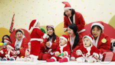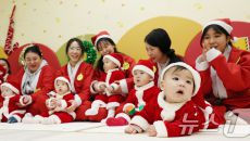 (경기광주=뉴스1) 김영운 기자 = 크리스마스를 일주일 앞둔 18일 경기 광주시 능평도서관에서 산타 복장을 입은 엄마와 아기들- 2025-12-18 13:42