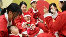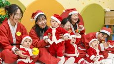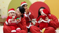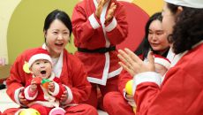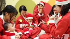 (경기광주=뉴스1) 김영운 기자 = 크리스마스를 일주일 앞둔 18일 경기 광주시 능평도서관에서 산타 복장을 입은 엄마와 아기들- 2025-12-18 13:40