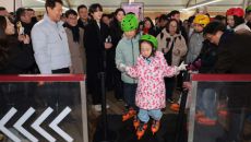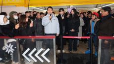 서울광장 스케이트장 입장객 맞는 오세훈 서울 시장 과 차준환, 심석희 선수