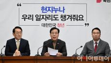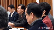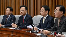 아시아투데이 송의주 기자 = 송언석 국민의힘 원내대표(오른쪽에서 두번째)가 19일 국회에서 열린 원내대책회의에서 발언을 하고- 2025-12-19 09:20