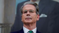 스콧 베선트 미국 재무장관이 17일 워싱턴 DC 모처에서 식사를 하던 중 수십 명의 손님 앞에서 반전(反戰) 단체 활동가들로부- 2025-12-19 06:20