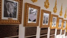 도널드 트럼프 미국 대통령(왼쪽)이 17일 워싱턴 백악관 내 ‘대통령 명예의 거리’에 역대 대통령 사진과 동판으로 제작한 업적- 2025-12-19 03:00