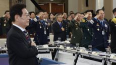 이재명 대통령이 18일 오후 서울 용산구 국방부 청사에서 열린 국방부·국가보훈부 업무보고에 참석해 국민의례를 하고 있다. 이날- 2025-12-19 01:19