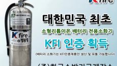 한국소방기구제작소(Kfire)가 소형 리튬이온 배터리 화재에 대응하기 위한 전용 소화기 제품으로 한국소방산업기술원(KFI) 인- 2025-12-19 16:20