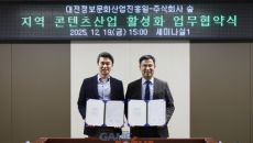 SOOP은 (재)대전정보문화산업진흥원(이하 진흥원)과 ‘지역 콘텐츠 산업 육성 및 성과 창출을 위한 업무협약’을 체결했다고 1- 2025-12-19 16:18