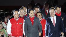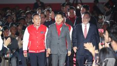 (청주=뉴스1) 김용빈 기자 = 장동혁 국민의힘 대표와 엄태영 충북도당위원장 등이 19일 충북 청주오스코에서 열린 충북도당 당- 2025-12-19 15:28