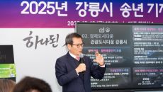 (강릉=뉴스1) 윤왕근 기자 = 김홍규 강원 강릉시장이 19일 송년 기자회견에서 민선 8기 3년 6개월을 "돌밭을 일궈 옥토를- 2025-12-19 13:21