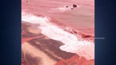 절벽을 타고 내리는 폭포부터 그 앞의 해변까지 온통 붉게 물들어 있습니다. 공포영화의 한 장면처럼 오싹한 느낌마저 드는데요,- 2025-12-19 13:07