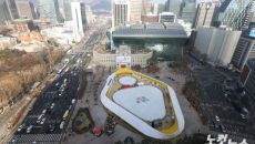 19일 개장을 앞둔 서울광장 스케이트장에서 관계자들이 막바지 개장 준비 작업을 하고 있다. 서울광장 스케이트장은 오늘(19일)- 2025-12-19 13:06