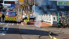 19일 오전 9시 18분쯤 제주시 노형동 한 도로 조경 공사 중 2만2900볼트 고압전선이 절단돼 불이 붙었다는 신고가 접수됐- 2025-12-19 12:26