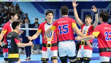19일 인천 계양체육관에서 열린 V리그 남자부 대한항공과 한국전력의 경기. 크리스마스 앞두고 산타 복장으로 경기에 나서는 대한- 2025-12-19 19:49