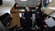 취재진의 질문에 답하는 전재수 더불어민주당 의원