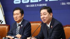 [서울=뉴스핌] 최지환 기자 = 정청래 더불어민주당 대표와 김병기 원내대표, 김정호 중앙당선관위원장이 19일 서울 여의도 국회- 2025-12-19 10:36