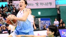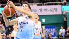 26일 부천체육관에서 열린 여자프로농구 하나은행과 신한은행의 경기. 신한은행 신지현이 하나은행 사키의 수비를 피해 골밑슛을 시- 2025-12-26 20:48