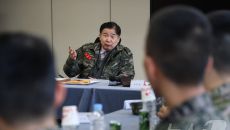 (인천=뉴스1) = 유철환 국민권익위원장이 26일 인천 강화군 해병대 제2사단 5여단을 방문해 군 장병들을 격려하고 있다. (- 2025-12-26 19:52