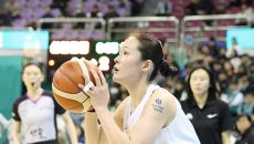 26일 부천체육관에서 열린 여자프로농구 하나은행과 신한은행의 경기. 하나은행 양인영이 신한은행 미마 루이의 수비를 피해 레이업- 2025-12-26 19:39