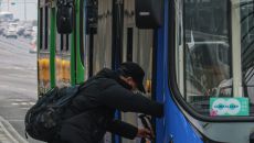 서울 시내버스가 다시 운행을 시작한 가운데 지팡이를 짚은 시민이 15일 오후 서울 여의도 버스환승센터에서 버스에 올라타고 있다- 12분전