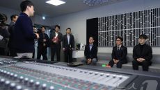 (성남=뉴스1) 박정호 기자 = 문화컨텐츠 현장 방문에 나선 김민석 국무총리가 15일 경기 성남시 넥슨 사옥 내 사운드실 스튜- 2026-01-15 12:45