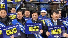 (천안=뉴스1) 이시우 기자 = 15일 충남 천안시 동남구 신부동 신세계백화점 앞에서 열린 더불어민주당 충남도당 '충남대전 행- 2026-01-15 12:43
