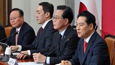 아시아투데이 송의주 기자 = 장동혁 국민의힘 대표(맨 오른쪽)가 15일 국회에서 열린 최고위원회의에서 발언을 하고 있다. ⓒ- 7시간전