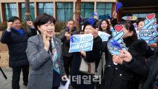 [포토]지지자들 응원 받으며 출마선언장 향하는 서영교