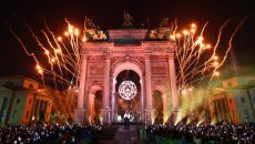 이탈리아의 알파인스키 영웅 알베르토 톰바와 데보라 콤파뇨니가 밀라노 ‘평화의 아치(Arco della Pace)’에 설치된 성- 13시간전