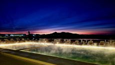 김이 모락모락 피어오르는 해수 온천 위로 떠오르는 태양[전승훈 기자의 아트로드]
