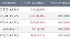 [장중수급포착] 보해양조, 외국인 7일 연속 순매수행진... 주가 +5.16%