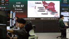 코스피가 장중 급등해 5700선을 회복한 5일 서울 하나은행 본점 딜링룸에 중동사태 관련 영상이 보이고있다. 이날 코스피는 전- 23시간전