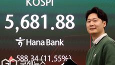 [이용우 기자] (서울=국제뉴스) 5일 서울 중구 하나은행 딜링룸 전광판에 코스피 등 시황이 표시되고 있다. 이날 코스피는 전- 23시간전