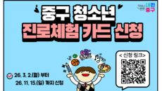 중구, 중1 청소년에 진로체험카드 연 20만원 지원