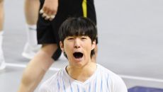 5일 의정부 경민대학교 체육관에서 열린 V리그 남자부 KB손해보험과 현대캐피탈의 경기. 현대캐피탈 김진영이 득점 후 환호하고- 2026-03-05 20:11