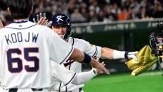 5일 일본 도쿄돔에서 열린 WBC(월드베이스볼클래식) 한국과 체코의 경기. 3회말 위트컴이 솔로홈런을 치고 기뻐하고 있다. 도- 2026-03-05 20:05
