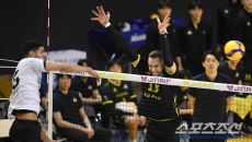 5일 의정부 경민대학교 체육관에서 열린 V리그 남자부 KB손해보험과 현대캐피탈의 경기. 현대캐피탈 레오가 상대 블로킹을 피해- 2026-03-05 20:05