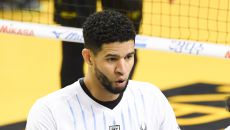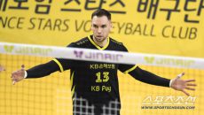 5일 의정부 경민대학교 체육관에서 열린 V리그 남자부 KB손해보험과 현대캐피탈의 경기. KB손해보험 비예나가 득점 후 환호하고- 2026-03-05 20:05