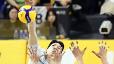 5일 의정부 경민대학교 체육관에서 열린 V리그 남자부 KB손해보험과 현대캐피탈의 경기. 현대캐피탈 허수봉이 상대 블로킹을 피해- 2026-03-05 20:05