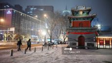 [박원준 기자] (중국=국제뉴스) 박원준 기자 = 4일(현지시) 중국 베이징에서 눈이 내리는 가운데 사람들이 동악사 앞을 지나- 2026-03-05 00:49