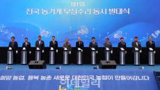 [이데일리 김태형 기자] 강호동(가운데) 농협중앙회장이 5일 충북 음성군 생극농협 농기계센터에서 열린 ‘제1회 전국 농기계 무- 1시간전