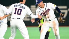 [사진]저마이 존스-셰이 위트컴과 승리의 기쁨 나누는 류지현 감독