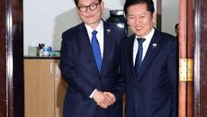 더불어민주당 정청래 대표(오른쪽)와 복당한 송영길 전 대표가 5일 국회 당대표실에서 면담 후 악수하고 있다. 진실은 노컷, 거- 5시간전