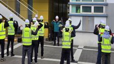 기장군이 읍·면 시가지 환경정비 사업장을 대상으로 작업 전 안전점검회의(TBM·Tool Box Meeting)를 실시하며 현장- 7시간전