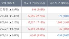 [장중수급포착] 유수홀딩스, 외국인 11일 연속 순매수행진... 주가 +1.87%